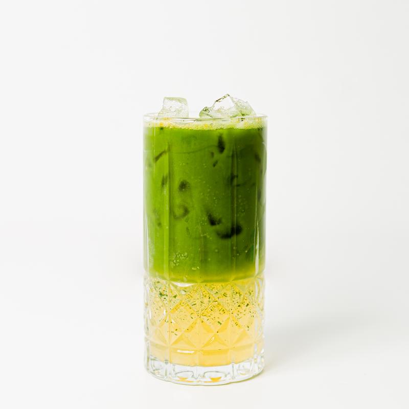 this refreshing and sparkling drink combines our house made lilikoi aka passionfruit simple syrup, sparkling water, and topped with ceremonial matcha.