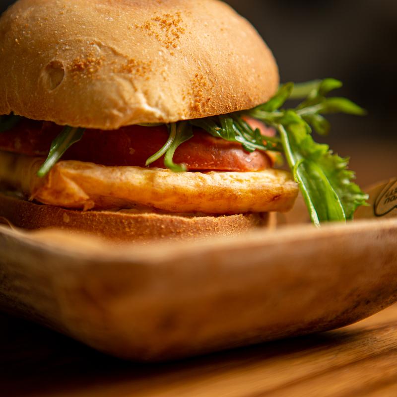 house made pan de sal bread, egg, mung bean patty, arugula, lemon garlic aioli, atchara